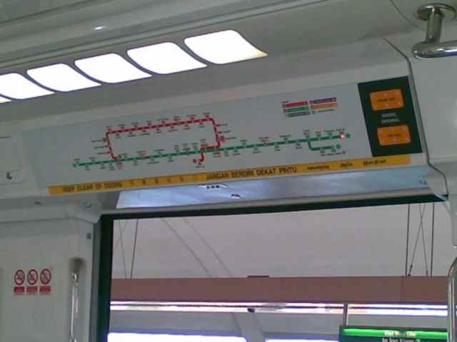 On the newer trains that I’ve seen, there’s a new feature that they’re implementing. It’s an electronic (sort of) display that shows what station the train is currently at. It will also show you what side of the train you’ll have to exit from. That’s what the two orange/yellow boxes on the right side are for.