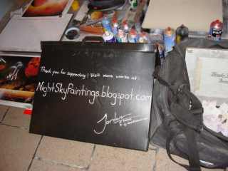 1. haha well. the paintings are copies definitely but, I do make one- off paintings. i have a gold series (i.e the paintinings are in gold and black or silver, slightly more expensive, but I dont make copies of them. already i have frostbite and painting number one in gold. I only do paintings like these on request). but considering it is art, and a very unique form, the customer is paying more for the performance and process than the product:) its great to tell friends that hey, i saw my painting made in front of me! but thanks for your comments!NightSky…. Graffiti is beautiful when it is not vandalism