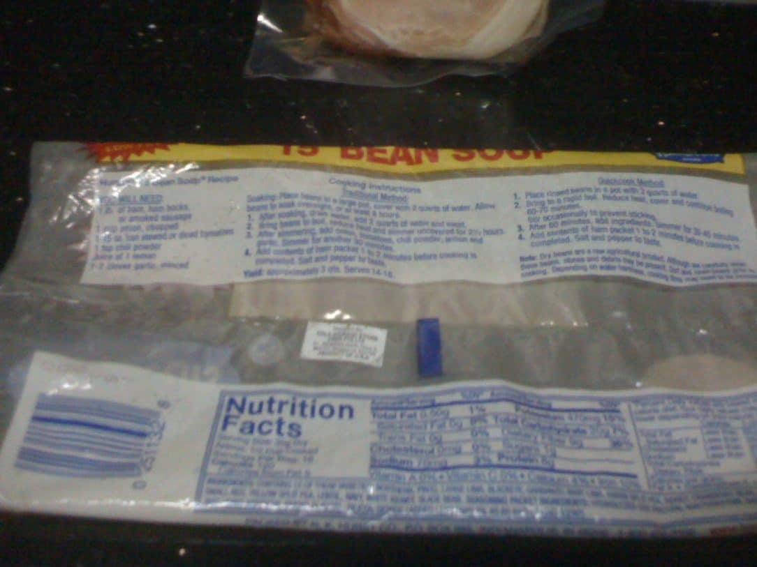 Here on the back of the packaging is the recipe. You can either do the quick cooking, or you can pre-soak the beans. We wound up mixing the directions a bit and doing it our own way.