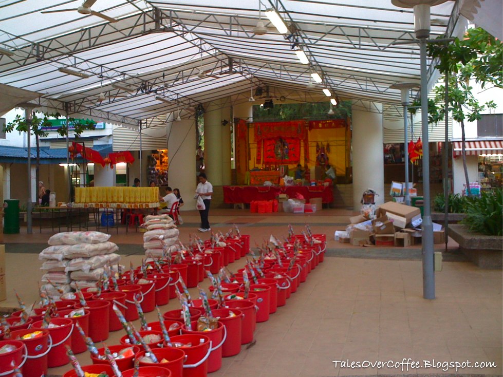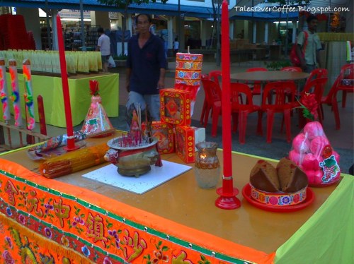 These photos are from a celebration of Hungry Ghost Month. Hungry Ghost Month is celebrated on the seventh month of the Chinese lunar calendar and is a tradition that originated in China. During the Communist Cultural Revolution (around 1966 I believe) it was stamped out there, but the tradition is still practiced in Singapore, Hong Kong and Taiwan.
