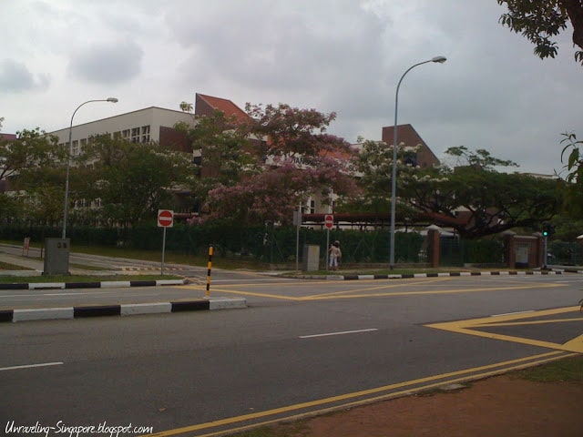 This photo was taken on a different day from the first two. Those are the same two trees, but from across the street. You can see Loyang Secondary School behind them, as well as two women below them taking photos of the trees just like I was the day before.