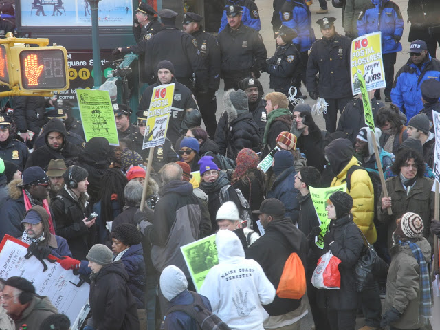 Soap boxing aside, I happened to run into a group of protesters on Monday at Union Square. The group seemed tiny compared to what I remember seeing on the news and the only thing that really made the moment memorable was the absurd ratio of police officers to protesters. In fact, I think there might have been more police present than there were protesters. Perhaps it wasn’t without reason, since there was some commotion that caused a lot of them to run into the crowd before they even crossed the street into Union Square, but I can’t help but feel that more than anything, the police presence was exaggerated and a waste of tax payer money.