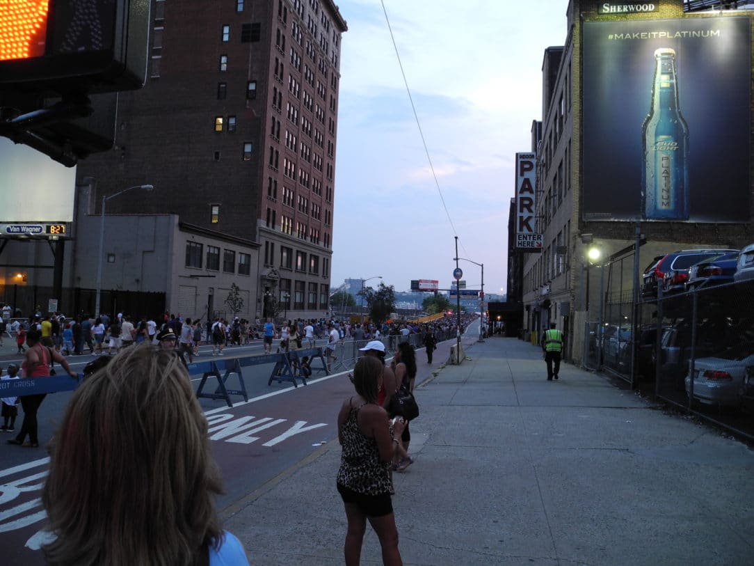 We walked down to 34th street and saw the massive crowds.  We decided the whole thing wasn’t worth the trouble anymore, had something to eat, got some sundaes at the McDonald’s there and then stood in the street and waited for the fireworks to start.  We figured we’d just see what we could see and the rest we’d catch on YouTube later.  We weren’t the only ones with that idea.  As many people as we saw walking down to the river all day, until just before the fireworks started, just as many were walking back into Manhattan, annoyed and complaining about how the barricades were set up and how there wasn’t a good view anywhere.  Also, there were NO PORTABLE TOILETS.  There were thousands of people heading to the fireworks event, but we didn’t see a single portable toilet set up to accommodate people.  That seems like a gross oversight by the city government.