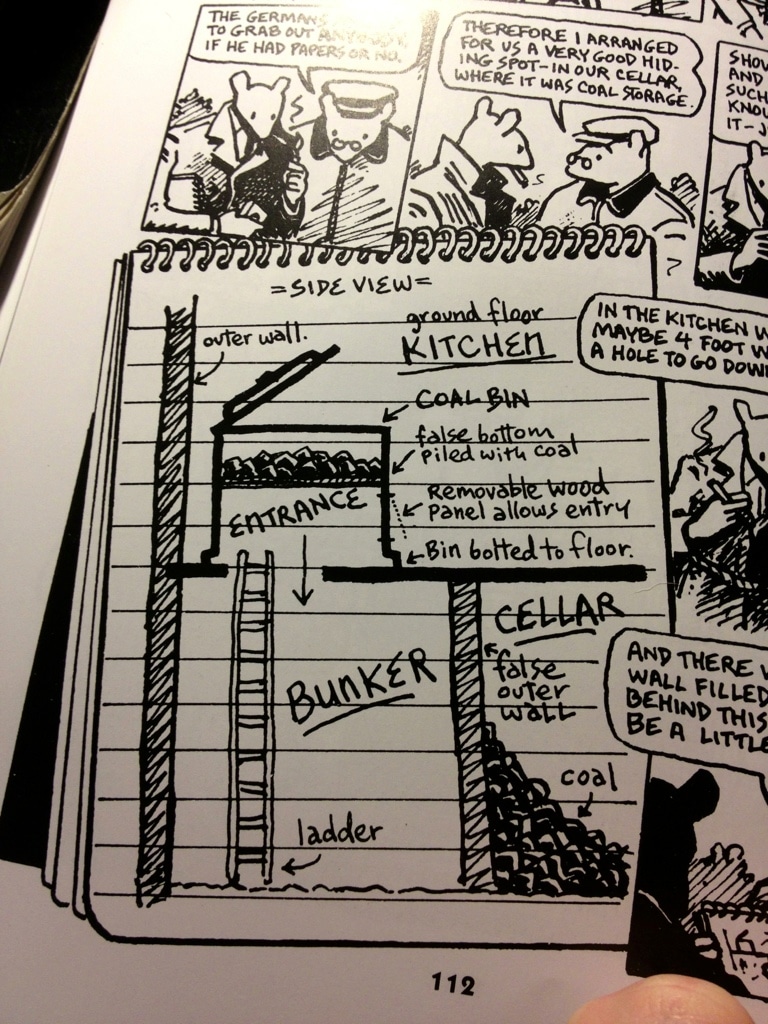 A page from Maus showing a Jewish “bunker” Posted on August 7, 2013September 4, 2021 by Bradley Farless I’m reading Maus as a launching point for a paper I’m going to write. Share this: Click to share on Reddit (Opens in new window) Reddit Click to share on Tumblr (Opens in new window) Tumblr Click to share on Pocket (Opens in new window) Pocket Click to share on Telegram (Opens in new window) Telegram Click to share on WhatsApp (Opens in new window) WhatsApp Like Loading... Related