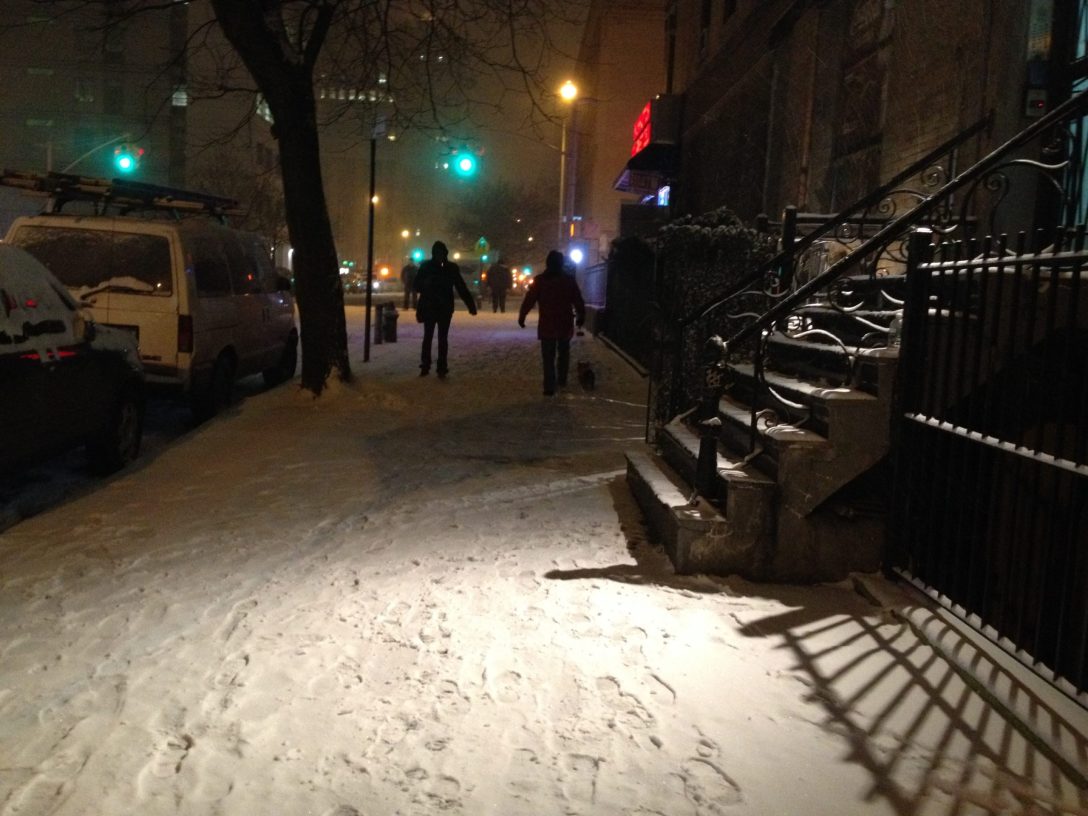 Because we have a dog, we have plenty of opportunities to go out and experience the weather, even when we don’t particularly feel like it, like tonight, with wind and fairly heavy snow. I think this will be the last dog we own while we live in an apartment. It wouldn’t be bad if I could just open a door and let the dog out into the yard to handle his business, but owning a dog in New York City is time consuming. We walk him about three times a day and that eats up anywhere from an hour to an hour and 15 minutes per day.