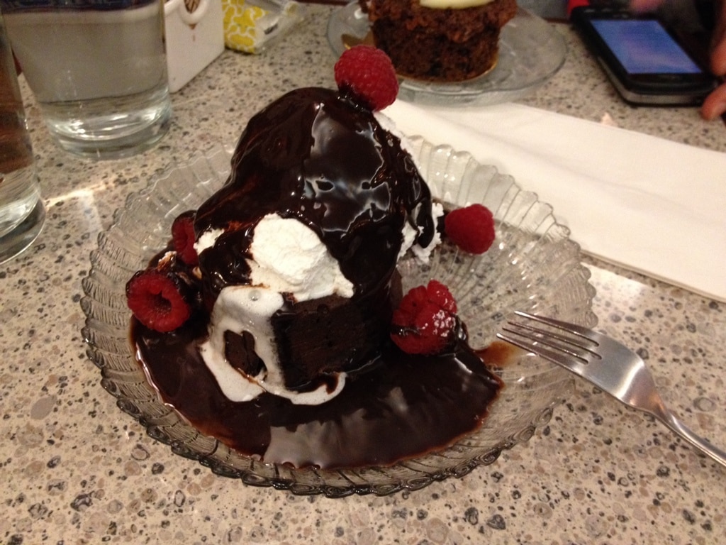 I’ve been dieting since early November. Counting calories is a drag but becoming overweight would be worse. Tonight I’m splurging, though, with a chocolate volcano cake from Veniero’s.