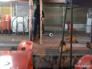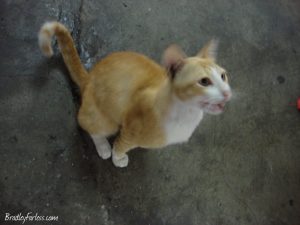 This girl was working at a satay stall we stopped at for a late meal. In fact, we got there just before they were closing. As they started packing up, cats started showing up. I was wondering what was going on until the girl working at the stall pulled out a bag of cat food to feed them. She seemed really excited to see the cats, and she had a good laugh when my wife ran over to watch them and had her photo taken with them.