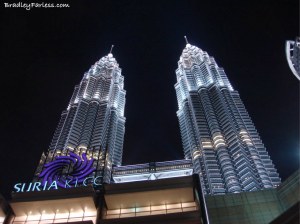 This was our third visit to Kuala Lumpur but we’d never seen the Petronas Towers lit up at night. We stayed in the mall below it late, browsing the book store, so when we were leaving we stopped by to snap a few photos.