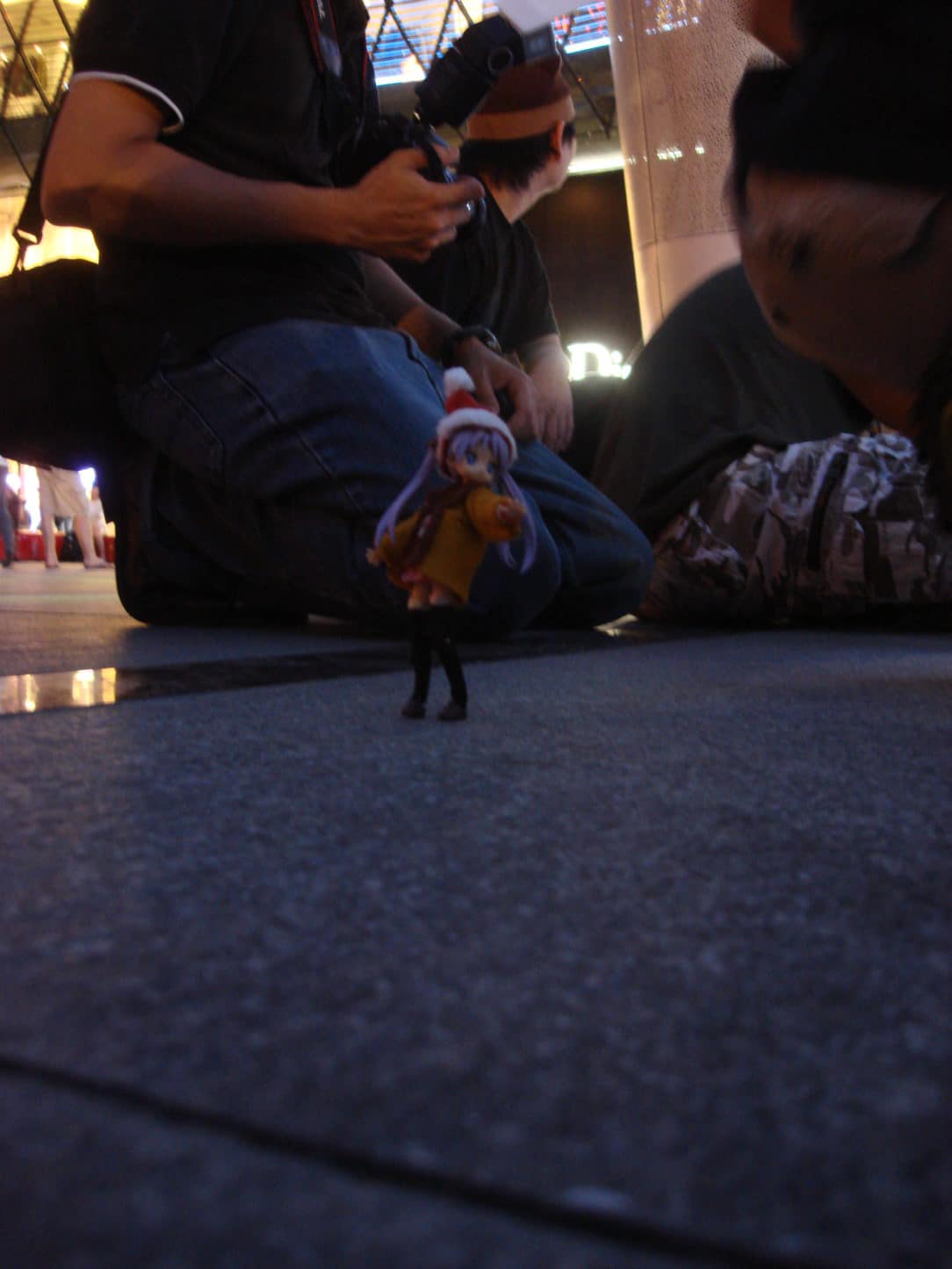 There are a lot of anime and manga fans all over the world. There are even people that collect wall scrolls and figures. I’d sort of expected this particular hobby to be a Japan-only thing, for fear of being socially ostracized. I was wrong! I saw a group of young guys sitting next to the dome covering the Orchard MRT entrance in front of Ion with cameras and figurines out. They were busy positioning their figurines in the perfect poses while taking photos of them against the backdrop of the Christmas shopping crowds, the lights and the mall.