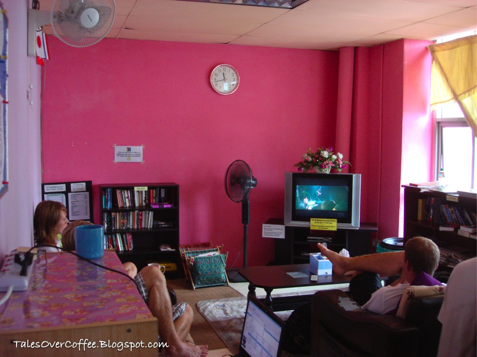 Also in the hallway are bulletin boards full of information.  If you’re ever at a loss for something to do, all you have to do is read the boards!  There are also warnings posted there, like information about taxi and gambling scams, like in the first photo.  In that particular case women, believed to be Filipinas, would lure lone tourists to their home, get them to gamble and then cheat the person out of their money.