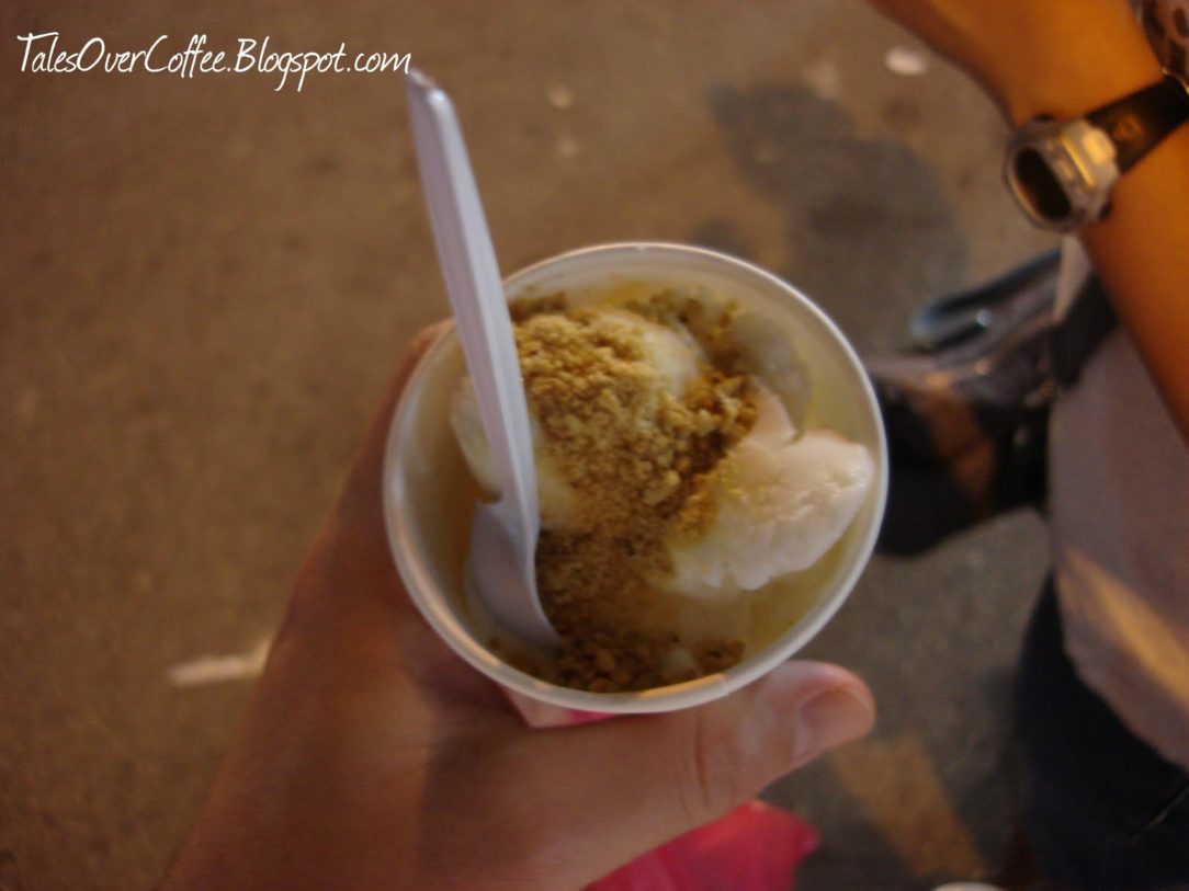 We followed that up with some ice cream that an old man was selling from a cart attached to his bicycle. It was better than I expected, especially with the crushed peanut sprinkled on it. I think it’s peanut anyway. The guy called it ‘kachang’ I think. The ice cream was mostly vanilla but there was a strong hint of durian flavor as well. I normally can’t even stand the smell of durian, but it was ok mixed with the ice cream.