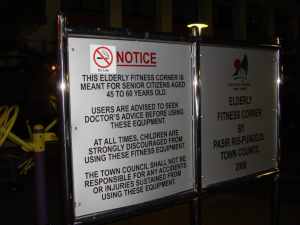 These workout areas and playgrounds are common in Singapore, but this is the first time I’d seen one that claimed to be specifically for old people.