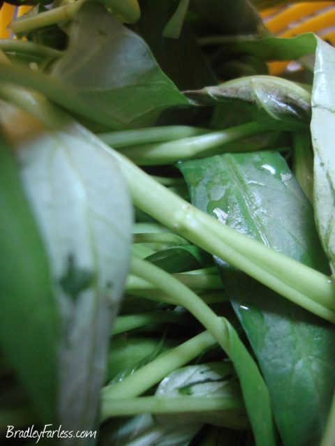 A leafy green. I’m not sure what it’s called, but it’s not bad tasting. It seems like there are a lot of leafy green vegetables in the supermarkets here with a lot of different names that all taste more or less the same. I like them, so my wife usually adds plenty.