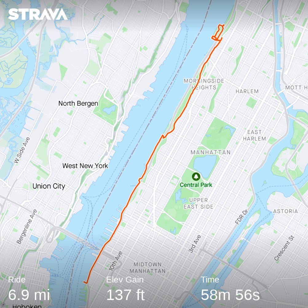 We parked on Riverside Drive and then rode up and down the Hudson River Greenway this afternoon. It was nice to get outside and feel the sun. The riverfront was packed with people, which was great because one of the best things about riding in New York City is people watching. It’s kind of weird when you pass someone else doing the same thing, though, because you both look at each other as you go by. It’s nice to see so many people out picnicking or just sitting in the shade and reading or talking. I wish I had more time to just sit and enjoy the day like that, so I’m glad we’re taking advantage of the time we have. Especially with this being New York City, where summers are way too short.