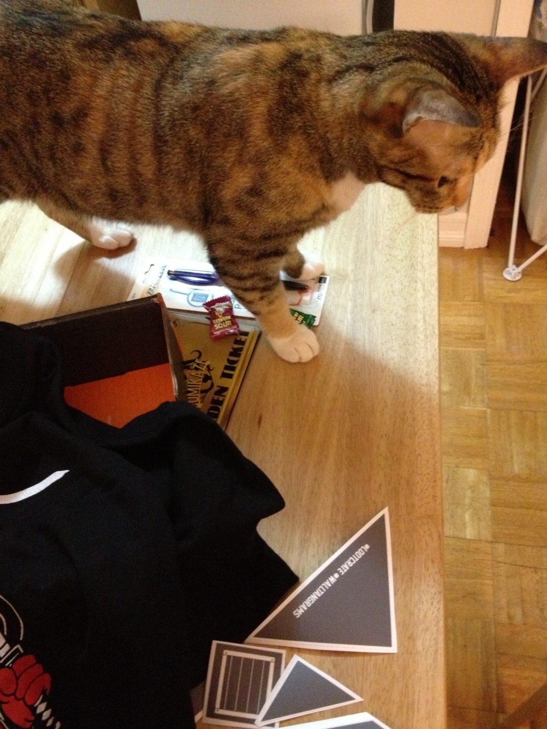 The robot sticker went on the side of my bookcase, along with the Mario/TMNT mashup sticker and a Cat Vs. Human sticker I got as an added bonus when I ordered one of Yasmine Surovec’s posters. I also went ahead and put the Loot Crate Wall Tangrams thing up there. I’m not quite sure what it’s supposed to be. The stickers just looked good arranged like that. Better than a box anyway. It sort of reminds me of a giant robot that can destroy cities. The best part is, these Wall360 stickers can be rearranged up to 200 times without losing their adhesive backing. They don’t seem to leave any residue either. I took a look at the web site and I saw quite a few things I’d like to stick on my walls. I’ll definitely be ordering from them in the future.