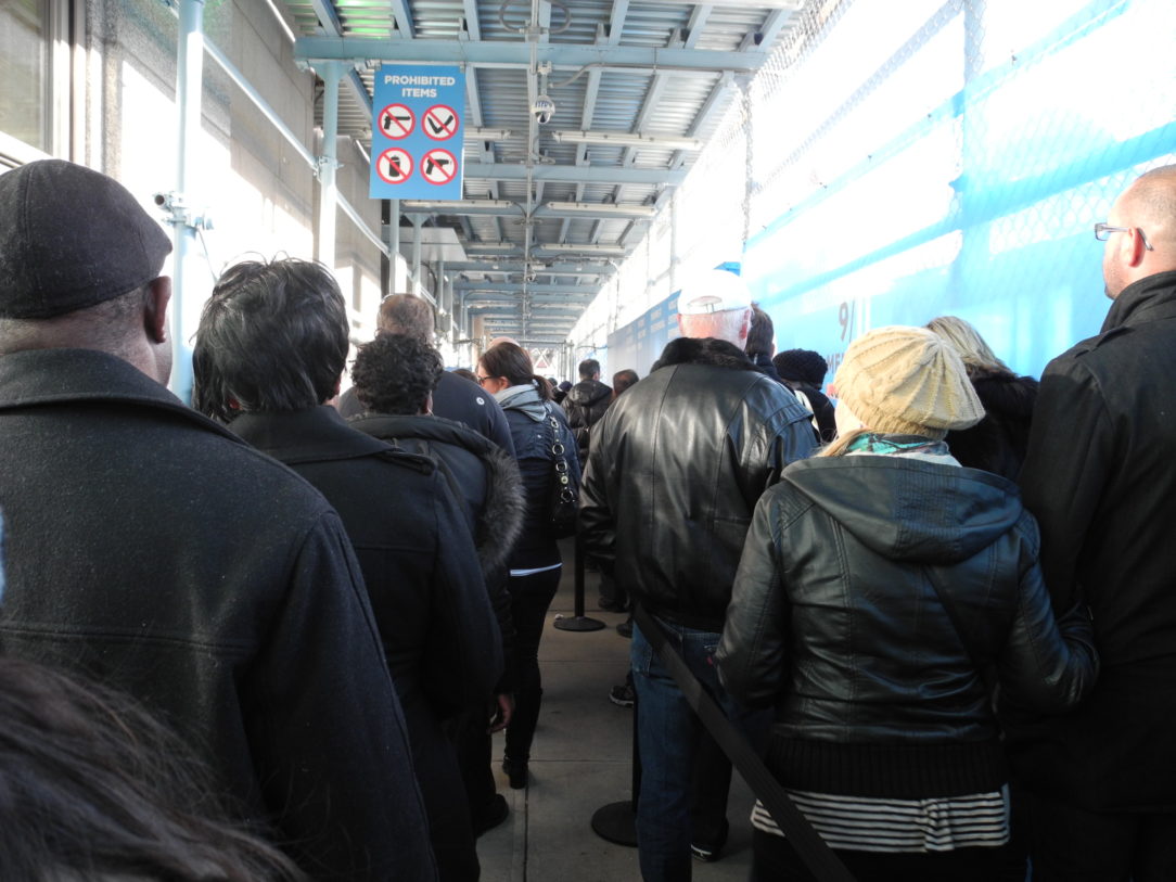 After we got our tickets we had to walk down Church Street, which turns into Trinity Place, until we got to Thames Street, where we made a right. The entry to the site is at the corner of Albany and Greenwich Streets. Getting into the site is a long process. First, we had to show our tickets of course. Then, since there wasn’t much of a crowd, we walked past the back-and-forth roped off area for long lines and went straight to the line for security screening. While we were waiting, I joked that we were going to get free sexual assaults along with our free tickets and if we were suspicious (like most people are), maybe a free cavity search, MRI and X-Ray. Luckily, the airport style security screening went fairly quickly. The only interesting thing that happened was when one of the guards was complaining to her coworker that another guard never took a turn at the door directing people to the metal detector lines. I imagine the guard in question was avoiding that particular job because it was cold out that day.