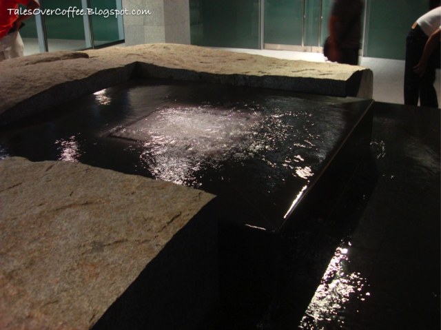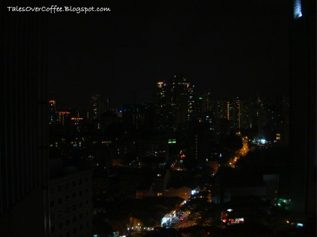 The roof on Orchard Central wasn’t done as plainly and blandly as the roof on Tampines 1. I couldn’t see it too well because it was dark and poorly lit, but it has flagstones as paving for the majority of it, which makes for uneven footing but a more enjoyable experience. There are also small pools of water, vines, and a few lights mixed in. The railing around the edge is a glass wall with a metal frame that doesn’t inhibit the view of the surrounding area. You can see a LOT from up there, and the people down on the street seem very small. I haven’t been that high up in a building in a long time. It made me miss New York City.