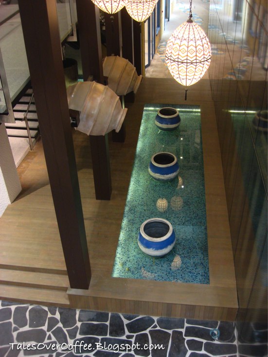 I think we wandered through Orchard Central for more than an hour without seeing everything. We eventually had to head back down so we could get back to viewing the lights on Orchard Road. As we were heading down though we noticed that there are basement levels and took a quick detour to check them out. The first basement is pretty bland. It’s probably the most boring part of the mall. The stores are small and didn’t seem too interesting. There is a Mos Burger down there though, and another place right next to it. I think it was a Subway but I can’t remember for sure. The second basement level was really cool though. We couldn’t actually get down to it yet because it was still under construction but we were able to lean over the rail and peer around a bit. It looks like it’s going to be a lot of fun! The floor was done in tiled designs, there were false, old fashioned building fronts, wooden frames for stalls, and the whole thing seemed to be designed to resemble an outdoor town that you might have seen in old Mexico. If you’ve ever passed by the front of Orchard and noticed the flower pots and wondered why they don’t match the interior, this is why. They’ll match the second basement level.