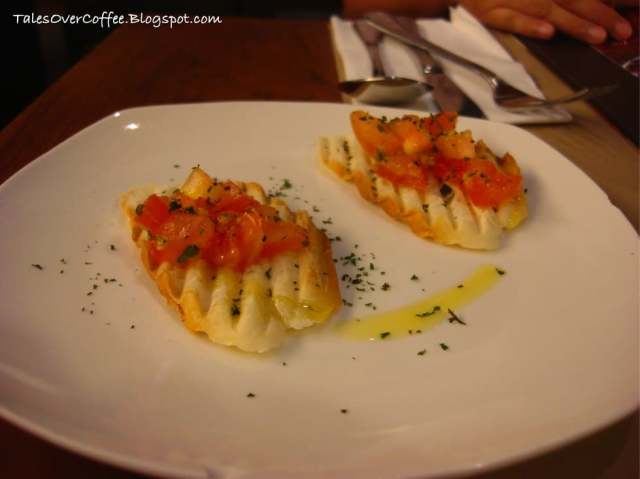 Sunday my wife and I were checking out 313 @ Somerset, the new mall on Orchard Road. On the ground level just across from the escalator that leads down into the MRT station is a restaurant called Trattoria. It’s very nice looking. The decor is very well done and the menu looked good, so before heading home we stopped by to give it a try.