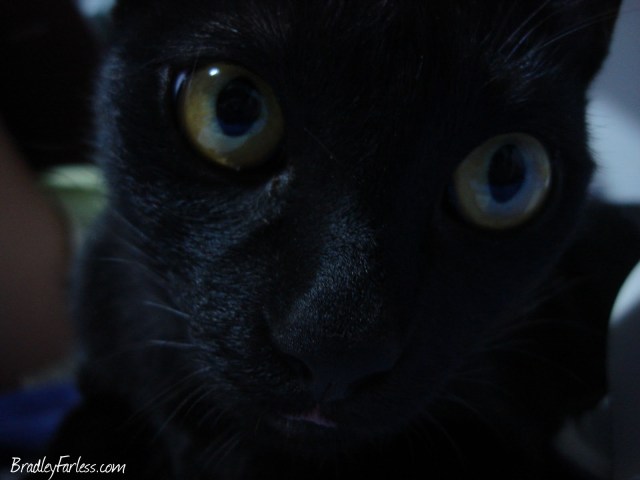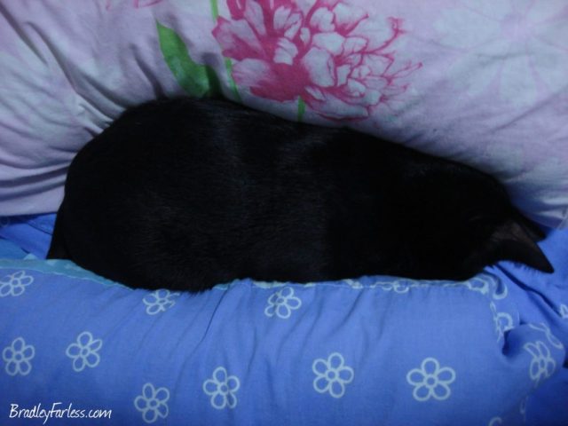 I used that brown bag to pack some stuff for when we went to Kuala Lumpur earlier this month. She saw it on the bed and then took up position half inside it. The expression on her face says, “Hey, I know what’s going on here and I don’t like it.” Cats are smarter than people give them credit for I think. They knew we were going to be gone for a while as soon as we pulled out our big bags and started packing them. They got agitated, ran around a bit and then tried to stay close to us to prevent us from leaving.
