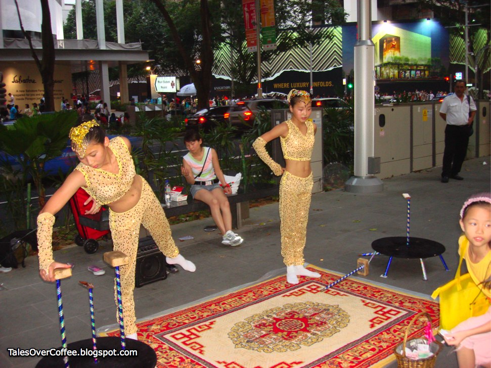 In January I happened to be walking down Orchard Road and I saw a crowd gathering. There were two girls doing an acrobatics performance for tips. They were really good, so I pulled out my camera and tried to record some of it. The lighting was pretty bad since it was late, but this is what I got:
