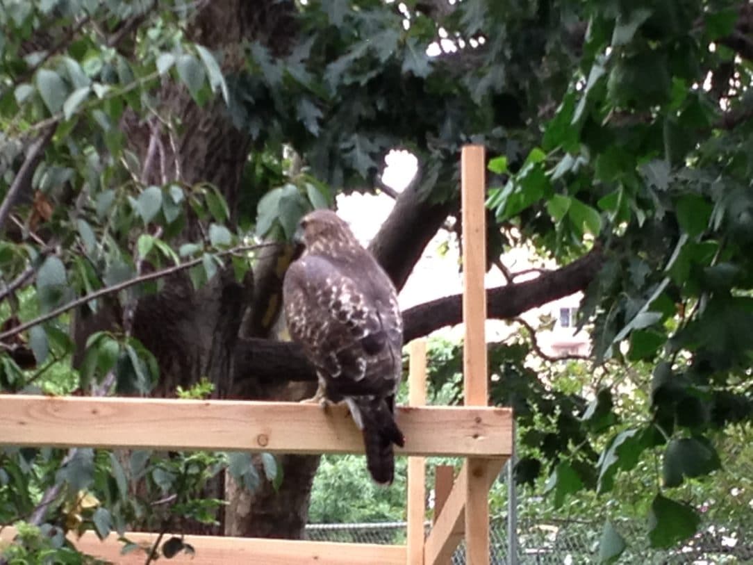 I asked a guy near us if the hawk showed up in the park often and he said that it, along with three siblings, lived in the area and had grown up in a nest on a window ledge on a nearby NYU building. He said that when the hawks were young, there was a 24/7 webcam set up above the nest. He took a moment to show me a video he had on his phone that he’d saved. I guess people were allowed to go into the building and look at the hawks from inside.